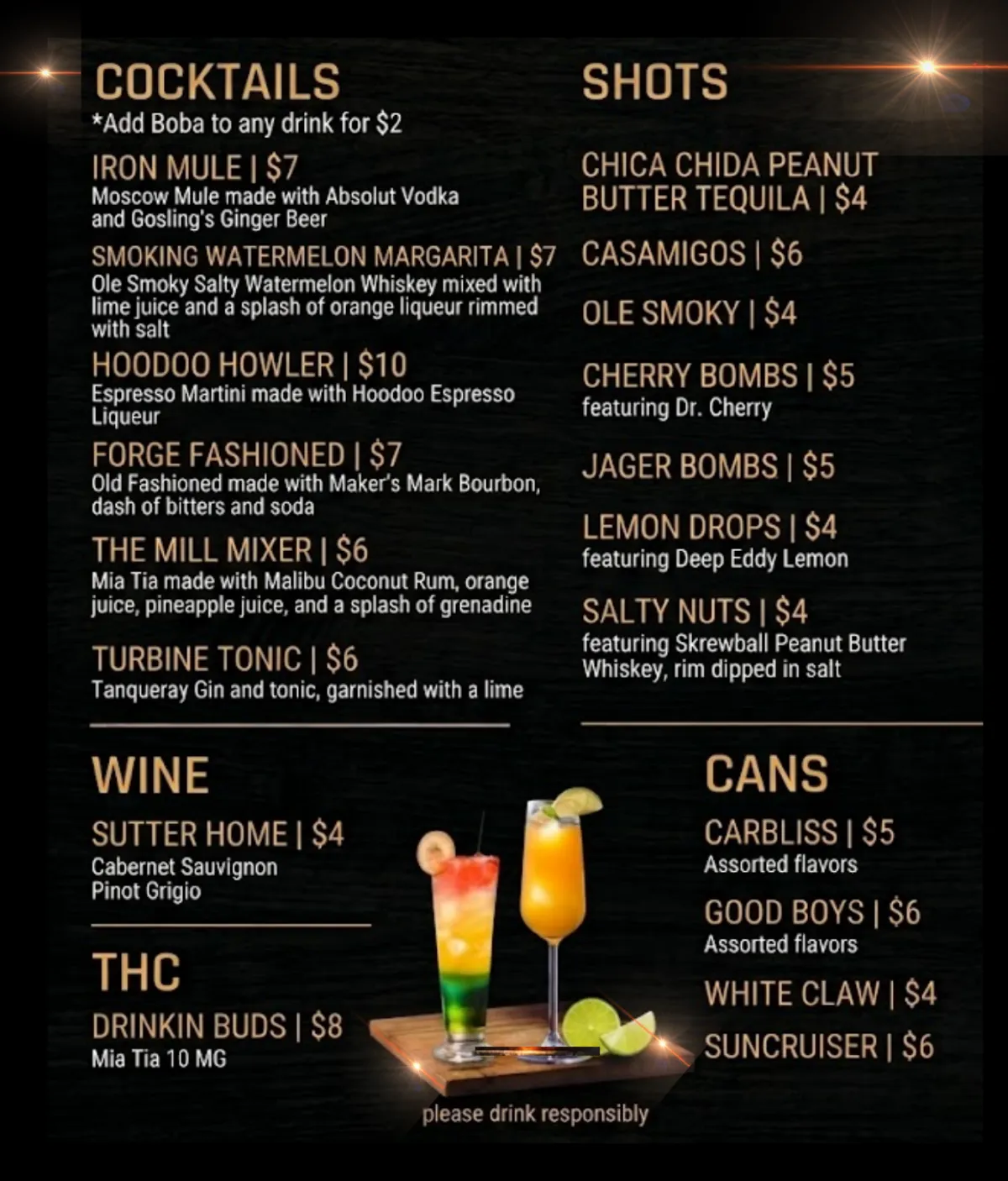 From ice-cold favorites to bold, crowd-pleasing mixes, our drinks are crafted to match your mood and elevate your night. Whether you’re here to celebrate, unwind, or turn up the energy, every sip hits just right—keeping the vibe smooth, the conversations flowing, and the night exactly where it should be.